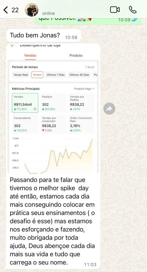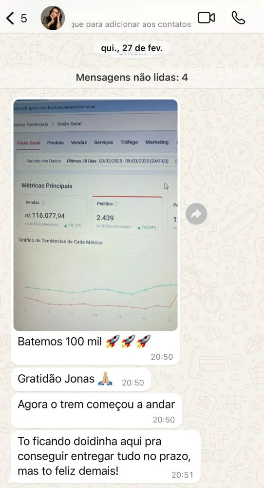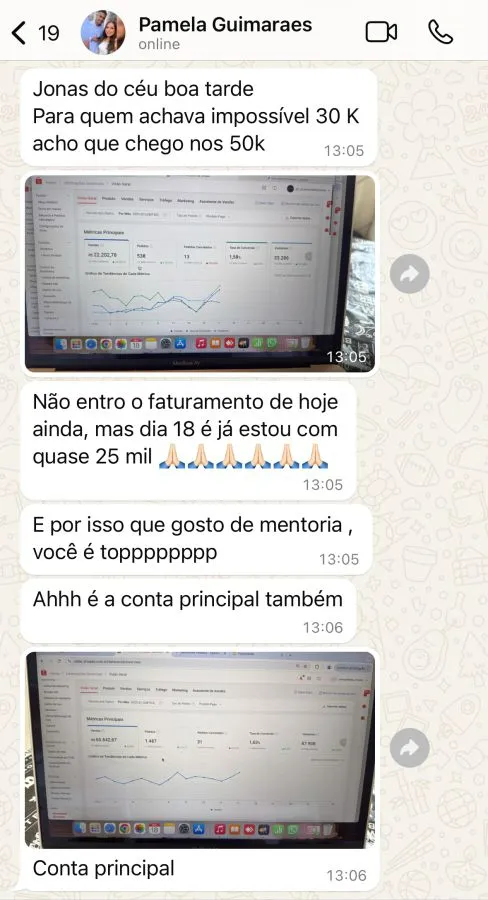 Diferente de quem apenas ensina a criar uma loja, Jonas vive o campo de batalha diariamente. Em 2024, ele consolidou sua expertise ao atingir o marco histórico de R$ 1 milhão em vendas em um único mês, acumulando um faturamento total superior a R$ 14 milhões.